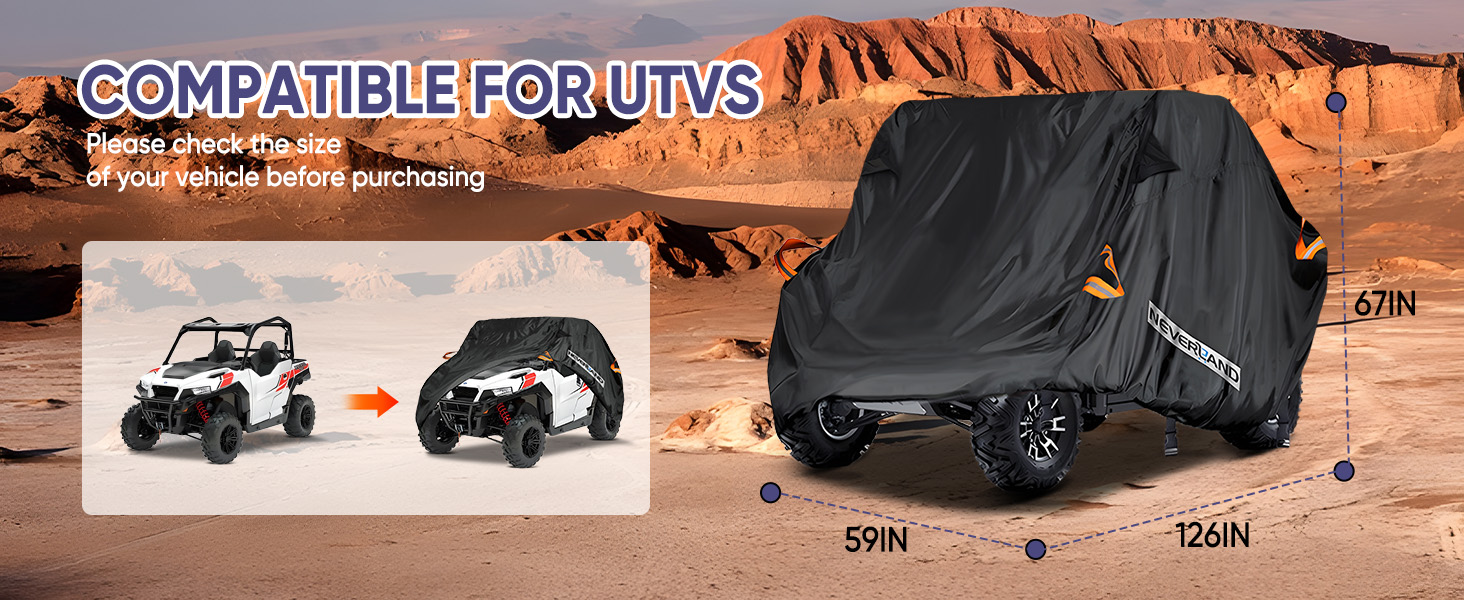 【Fitment Models】NEVERLAND UTV cover fits for Polaris RZR Yamaha Can-Am Defender Honda Pioneer Teryx Mule / Single Row Seats UTV (2-3 Passenger), ★Please note : only for Single Row Seat! Please check your UTV MODEL YEARS as well as the UTV Fitment Guide before you making an order! If you still have doubts , please feel free to contact us.