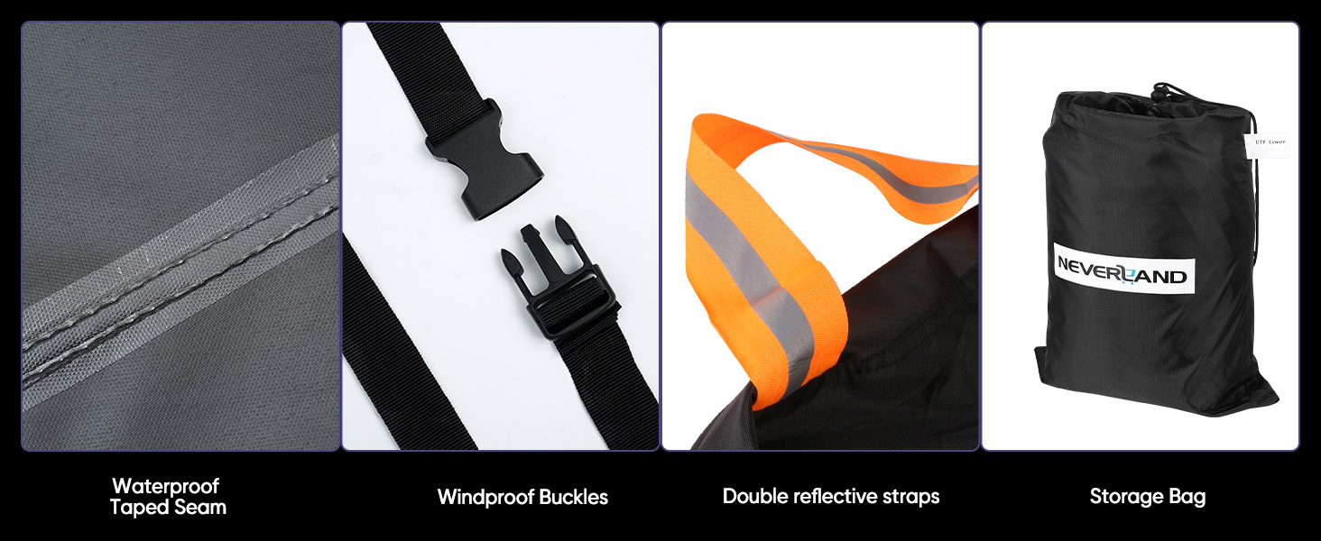 【Excellent Material】High Quality 190D Denier Oxford cloth and Double-stitched seams, 2-3 Seats UTV cover can efficiently protect your UTV from rain, sun, dust, and bird poop, also it can protect your vehicle's surface from being scratched by sharp objects.
