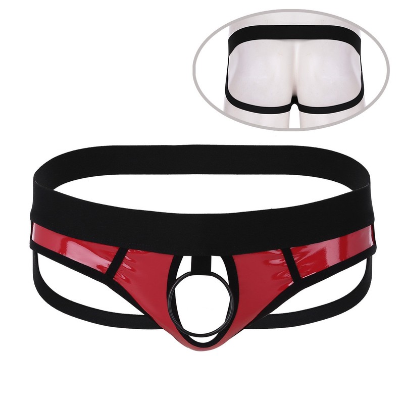 Breiter, bequemer, elastischer Taillenbund, vorne mit Metall-Penisringen, offenes Hintern Design.