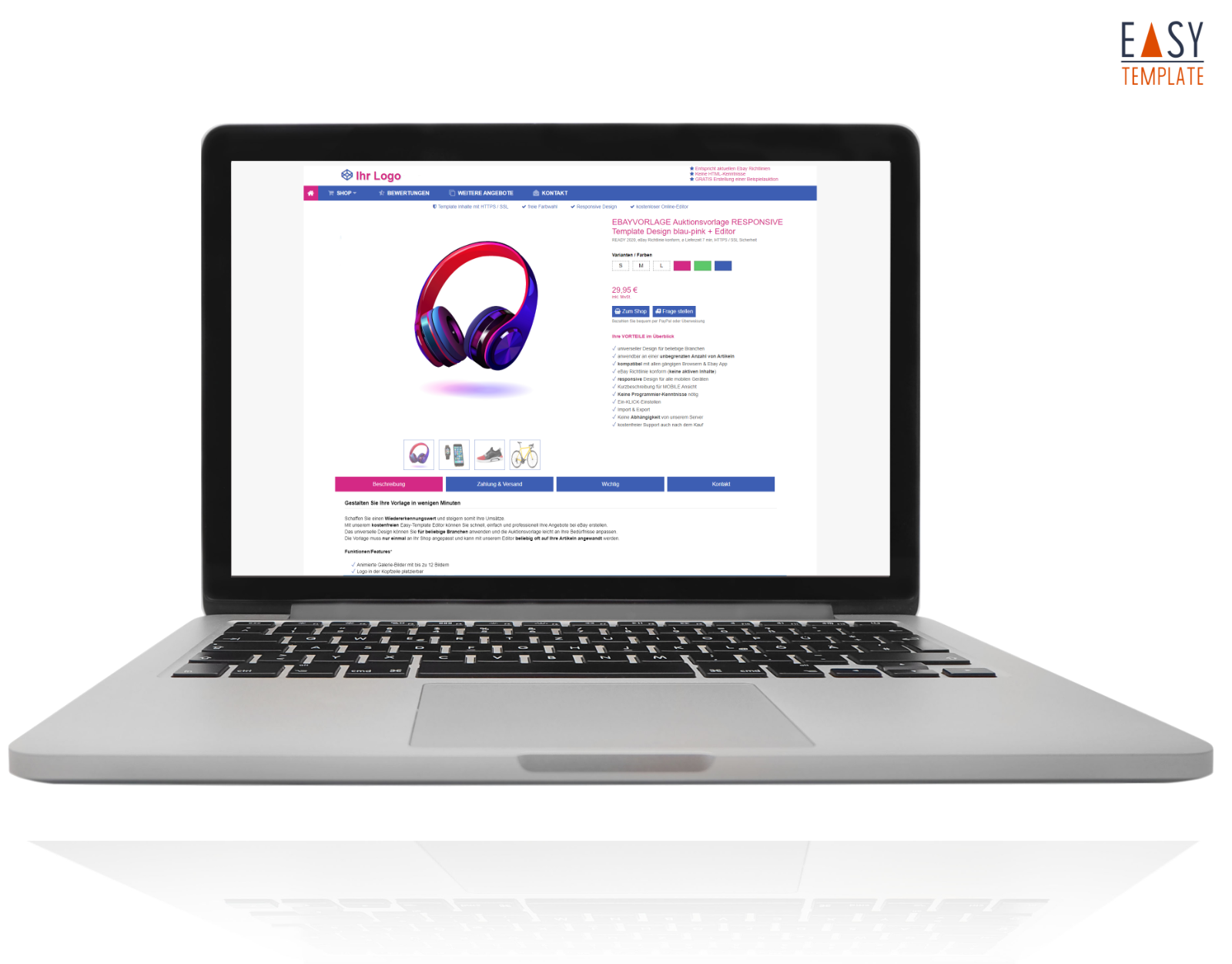 Mit unserem kostenfreien Easy-Template Editor können Sie schnell, einfach und professionell Ihre Angebote bei eBay erstellen.