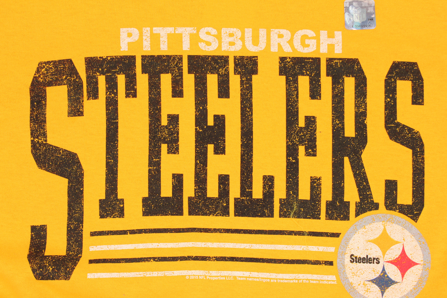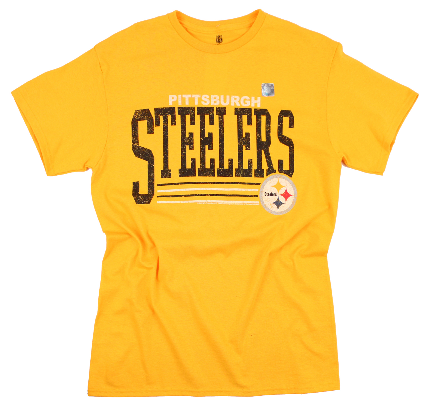 Let everyone how much you love your team with this Pittsburgh Steelers Fundamentals Logo shirt! This t-shirt features a distressed logo printed on the chest. Made in the USA.
