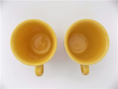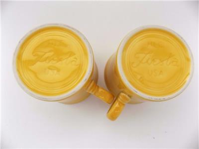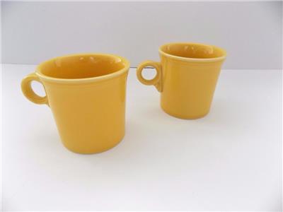 YOU ARE BIDDING ON AN WONDERFUL SET OF 2 COFFEE MUGS BY FIESTA HLC. THIS CERAMIC DINER STYLE CUP MEASURES 3 1/2 INCHES TALL AND HOLDS APPROXIMATELY 8 OUNCES OF LIQUID. THESE MUGS ARE IN MINT CONDITION WITH NO MARKINGS, STAINS, CRACKS OR CHIPS. THE HANDLE IS PERFECT, AS WELL AS, THE INSIDE. THIS MUG IS EXTREMELY CLEAN AND COMES FROM A SMOKE-FREE ENVIROMENT. IMPRINTED ON THE BOTTOM READS, "FIESTA" USA, WHICH IS IN PERFECT CONDITION.