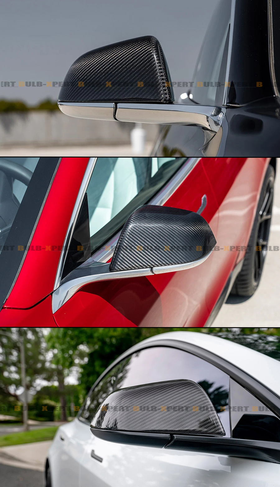 FOR 2017-25 TESLA MODEL 3 DIRECT ADD-ON REAL CARBON FIBER SIDE MIRROR COVERS CAP