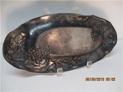 Antique ornate bread tray, probably from the early 1900s. Lovely cluster of grape vines design.