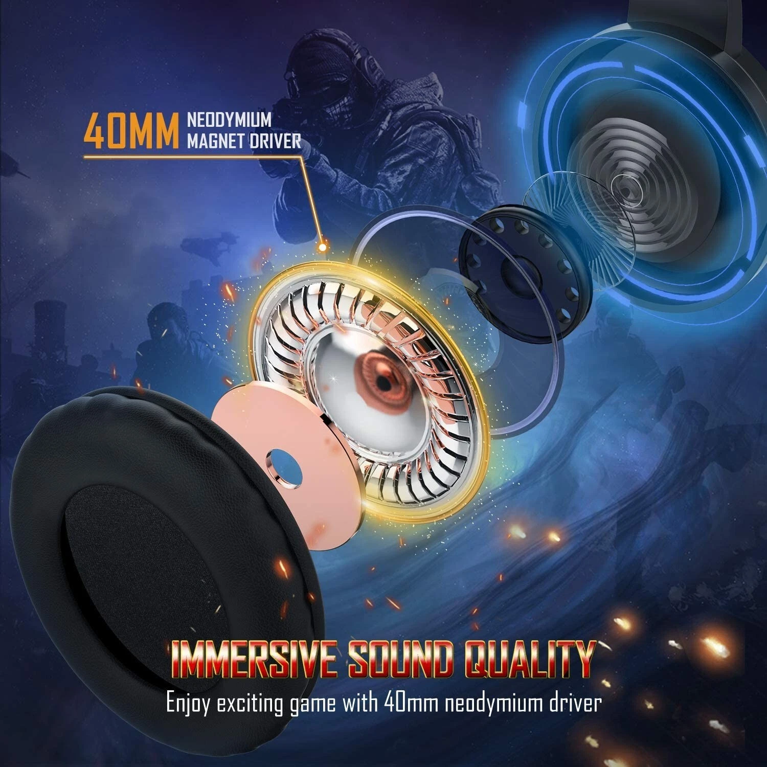 - Super Real Gaming Experience - High-grade 50mm magnetic neodymium driver delivers clear stereo bass sound, acoustic positioning precision enhances the sensitivity of the speaker unit, and you can feel the real sound of an explosion or a grenade blast. Perfect for various games like Fortnite, PUBG, Halo 5 Guardians, Metal Gear Solid, Call of Duty, Star Wars Battlefront, Overwatch, World of Warcraft Legion, etc.