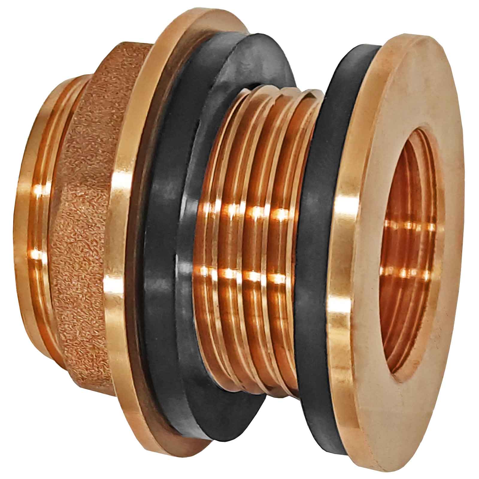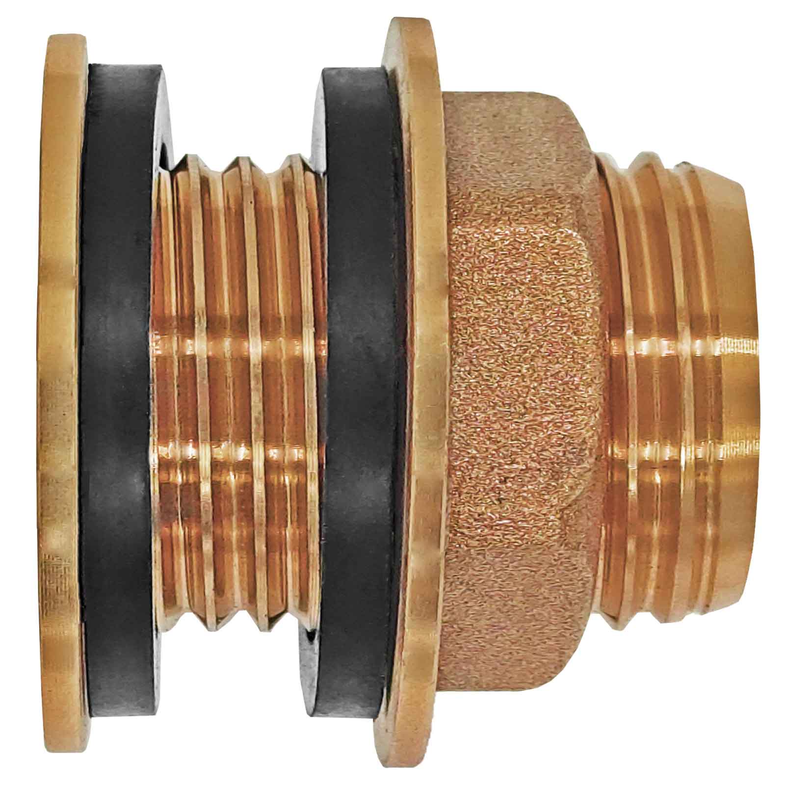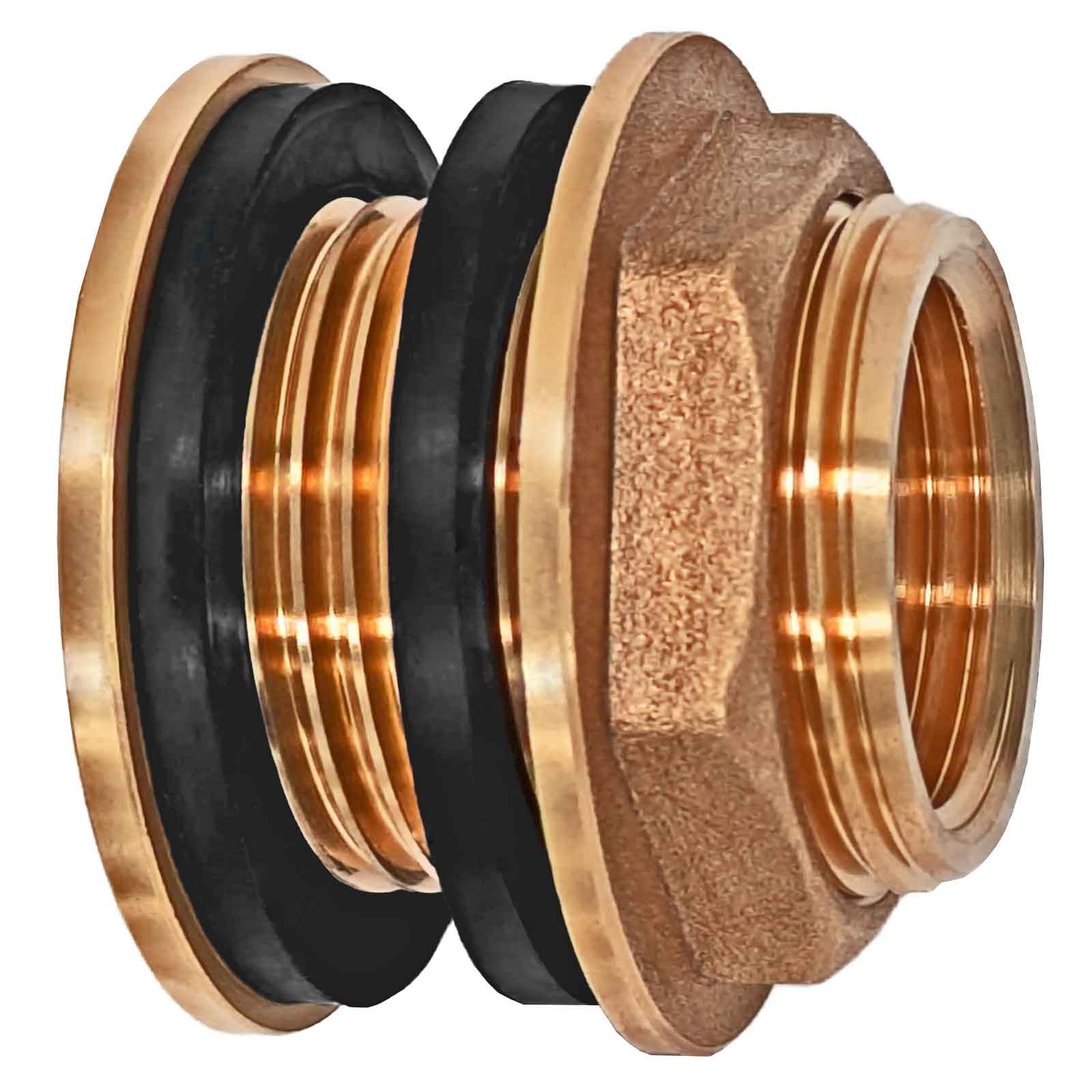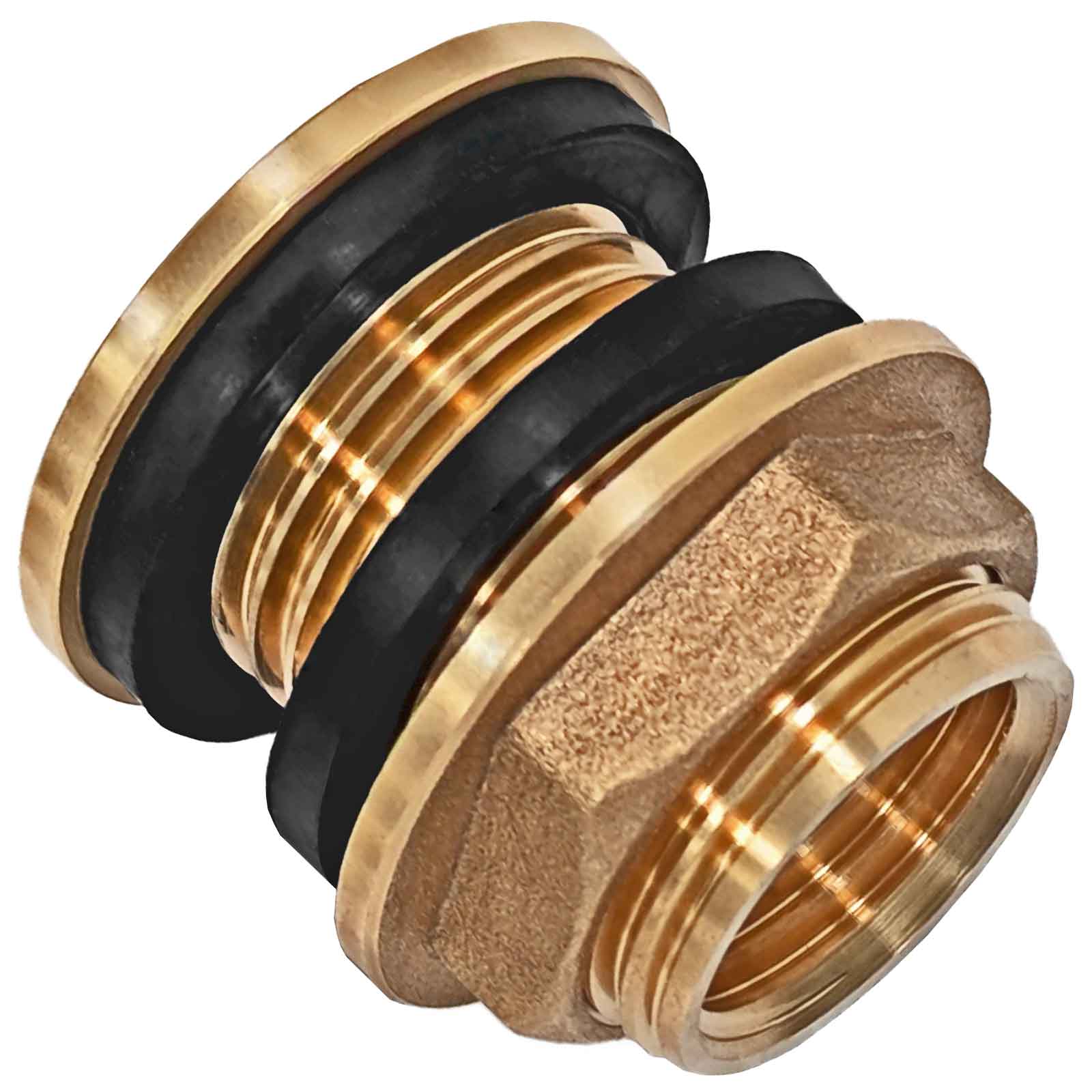 Regentonnendurchführung, Tankverschraubung, Faßverschraubung, Behälterverschraubung aus Messing mit Aussengewinde und Innengewinde
