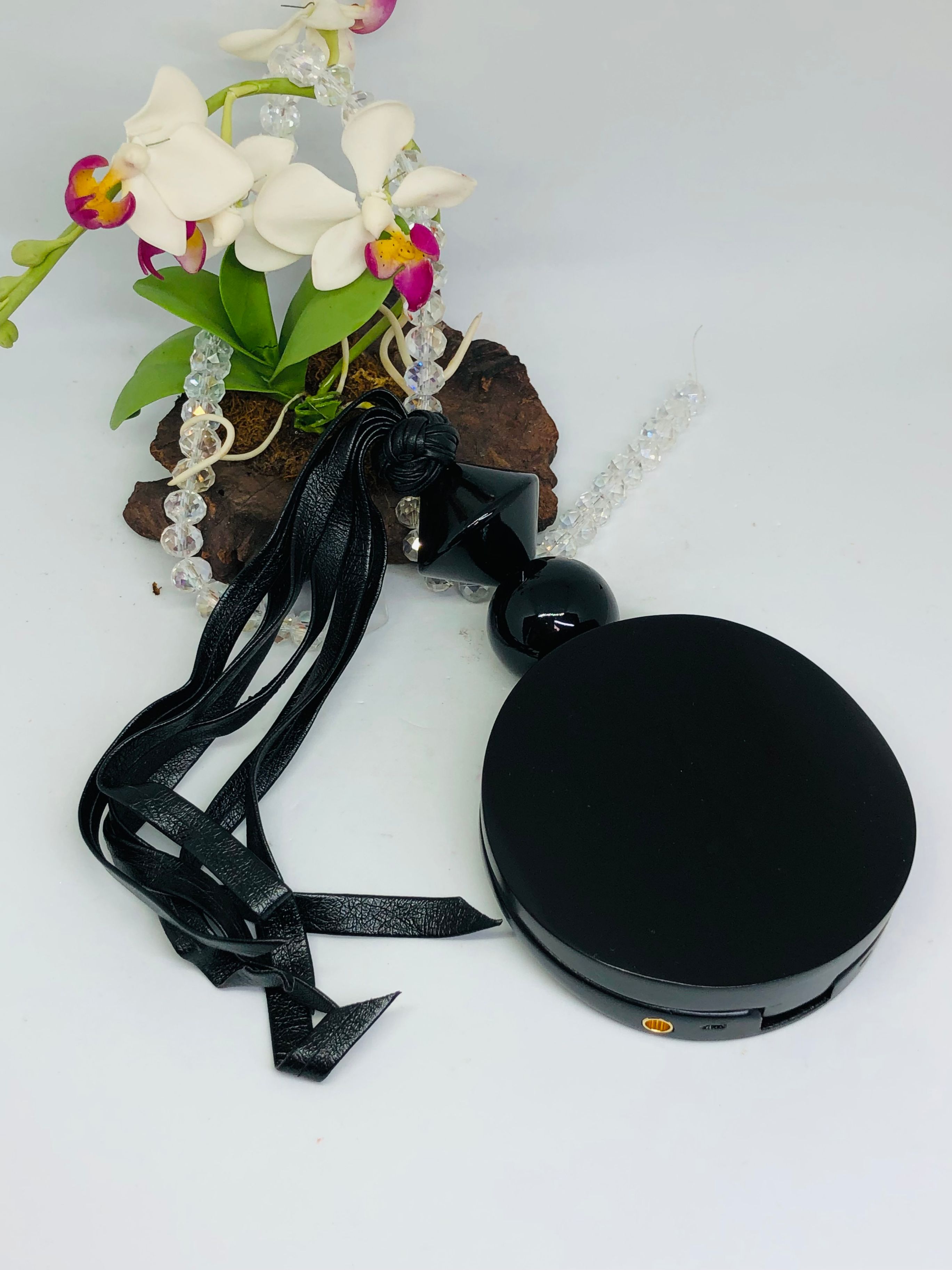 Comes with a leather tassel and a leather necklace string that are both magnetic