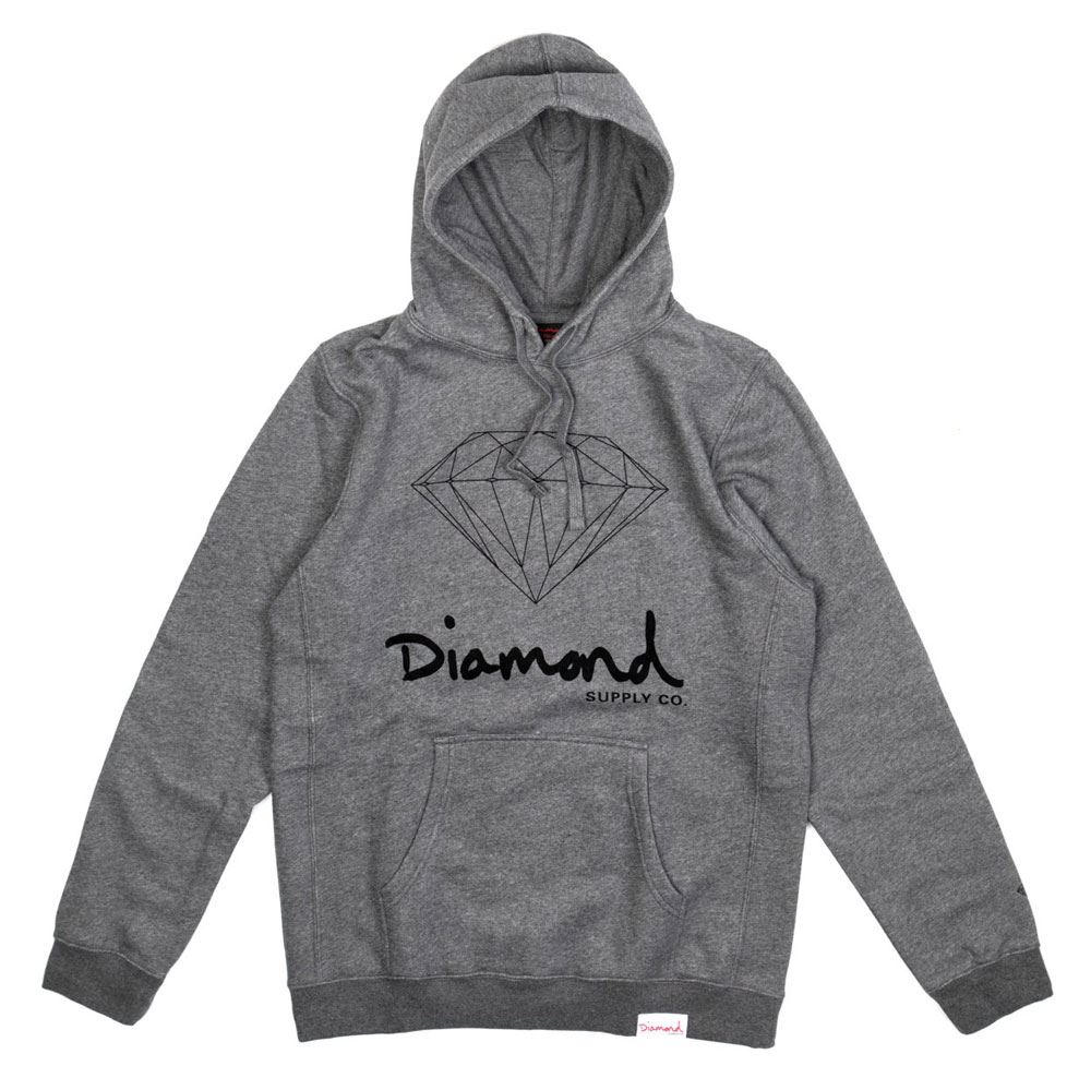 The Diamond Supply Co OG Sign Core hoodie is an authentic Streetwear sweatshirt made with 100percent Premium Fleece. This hoodie features a Diamond OG Script woven label on the bottom left and a screen print to the front. This hoodie fits true to size.