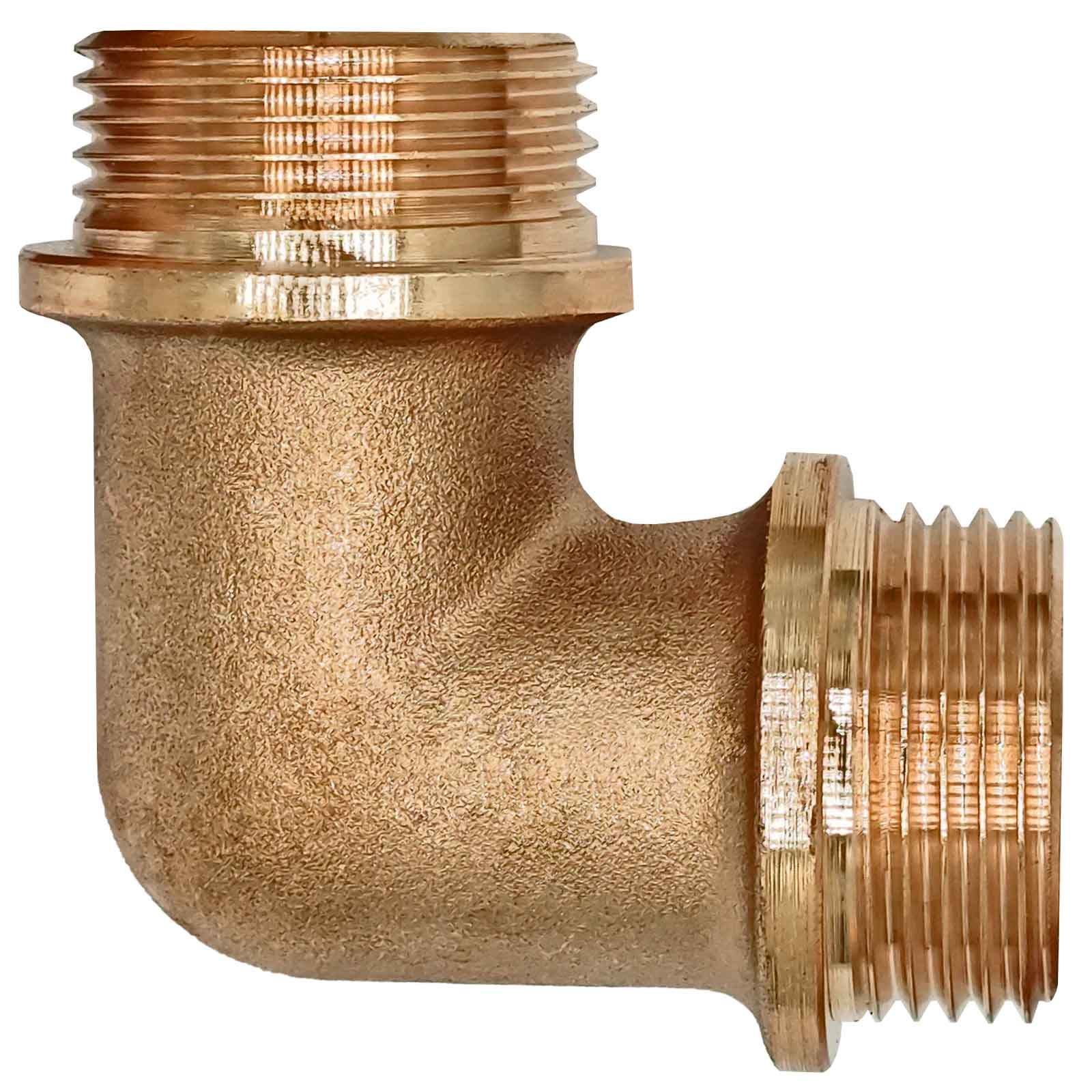 Gewinde-Fitting aus Messing > Winkel 90 Grad mit Außengewinde mit Kragen (AG-AG)