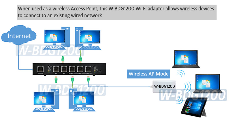 When switching to wireless AP mode, this Wi-Fi adapter can instantly expand the originally