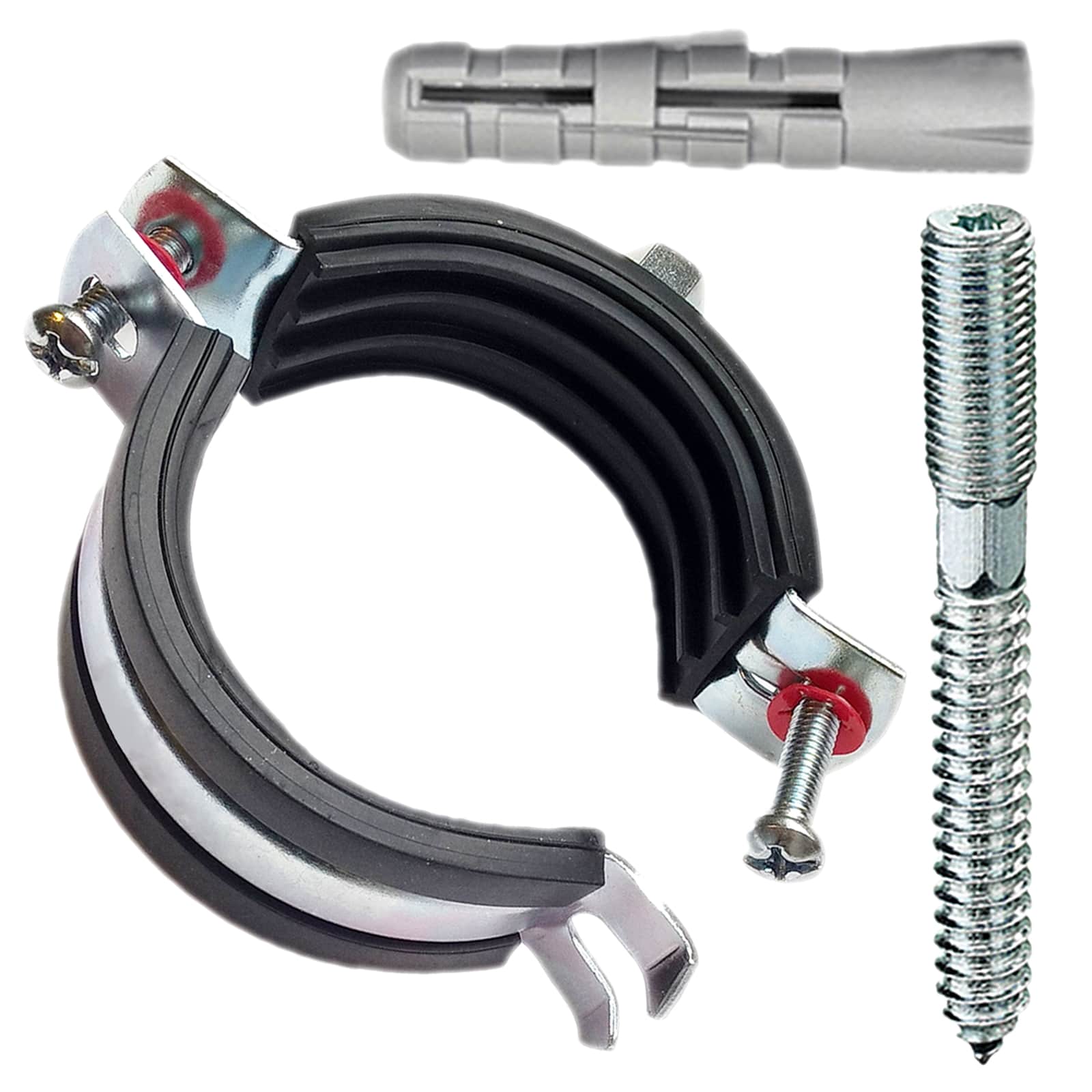 HT-Rohrschelle mit Schallschutzeinlage und 2 Schrauben.