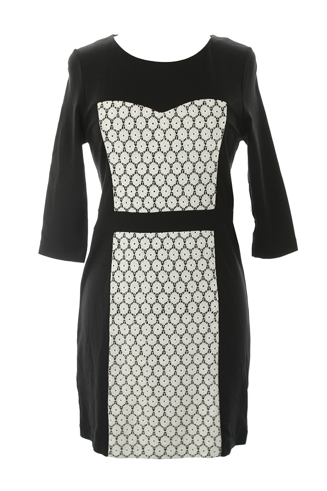 Kensie Dove Combo Contrast 3/4-Sleeve Ponte Sheath Dress S