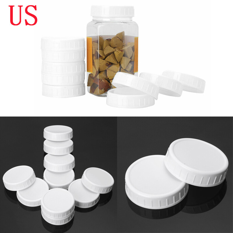 Set of 10 Unlined White Ribbed Lids Storage Caps for Mason Jars.