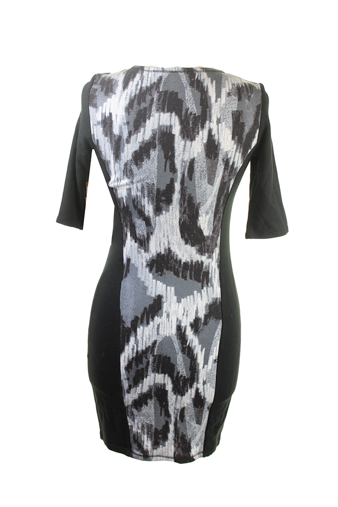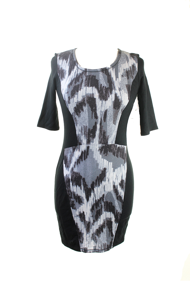 RACHEL Rachel Roy Womens Black Elbow-Sleeve Printed-Paneled Dress S