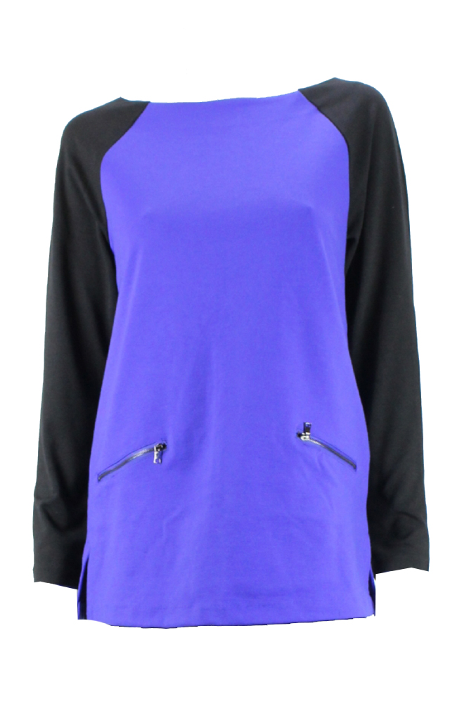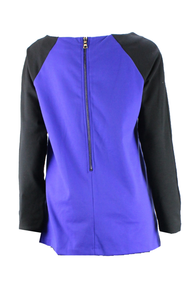 Ellen Tracy Womens Blue Colorblocked Back-Zipper Top S