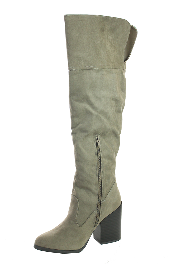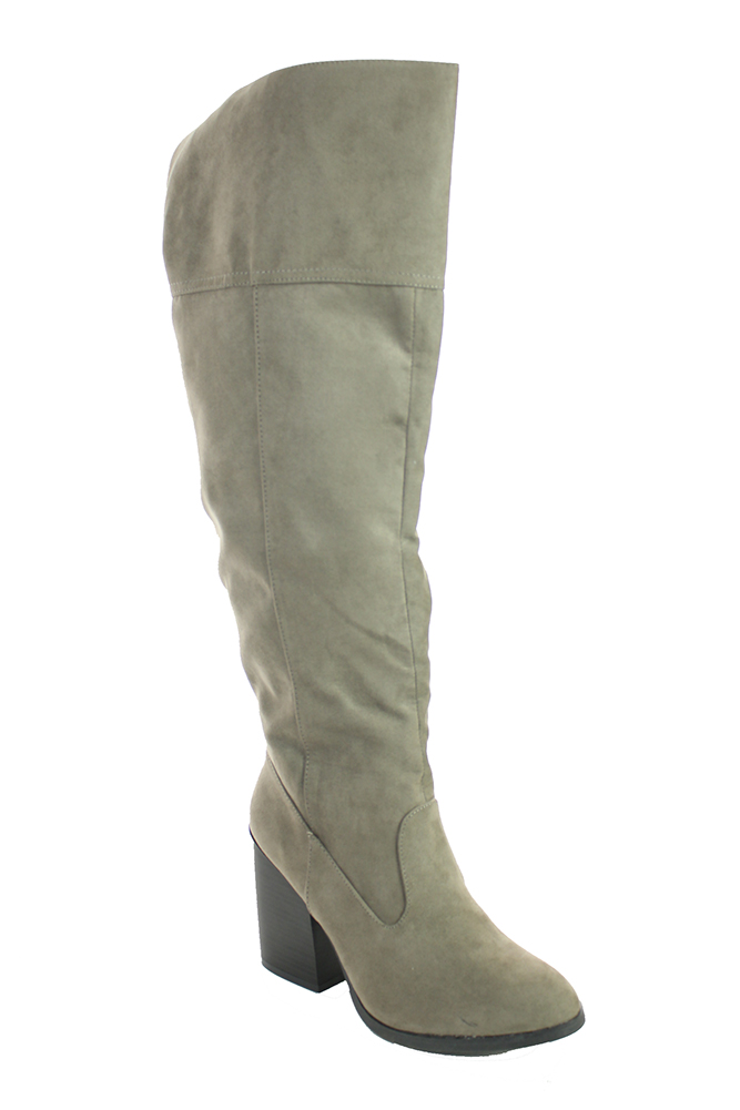 Qupid Womens Faux Suede Knee High Almond Toe Fringe Cowboy Boot Black 5.5
