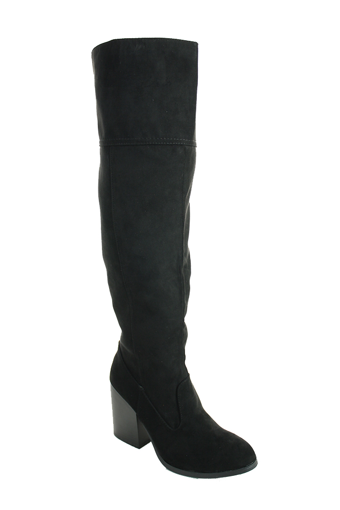 Qupid Womens Faux Suede Knee High Almond Toe Fringe Stiletto Boot Dark Ru