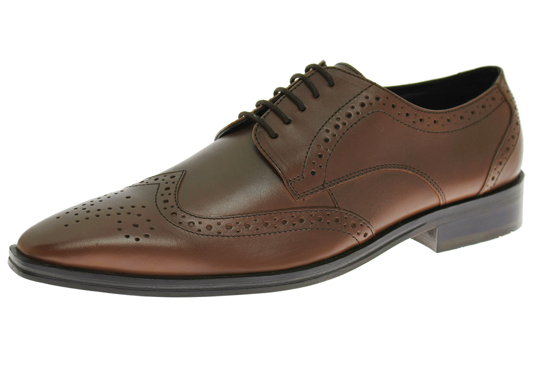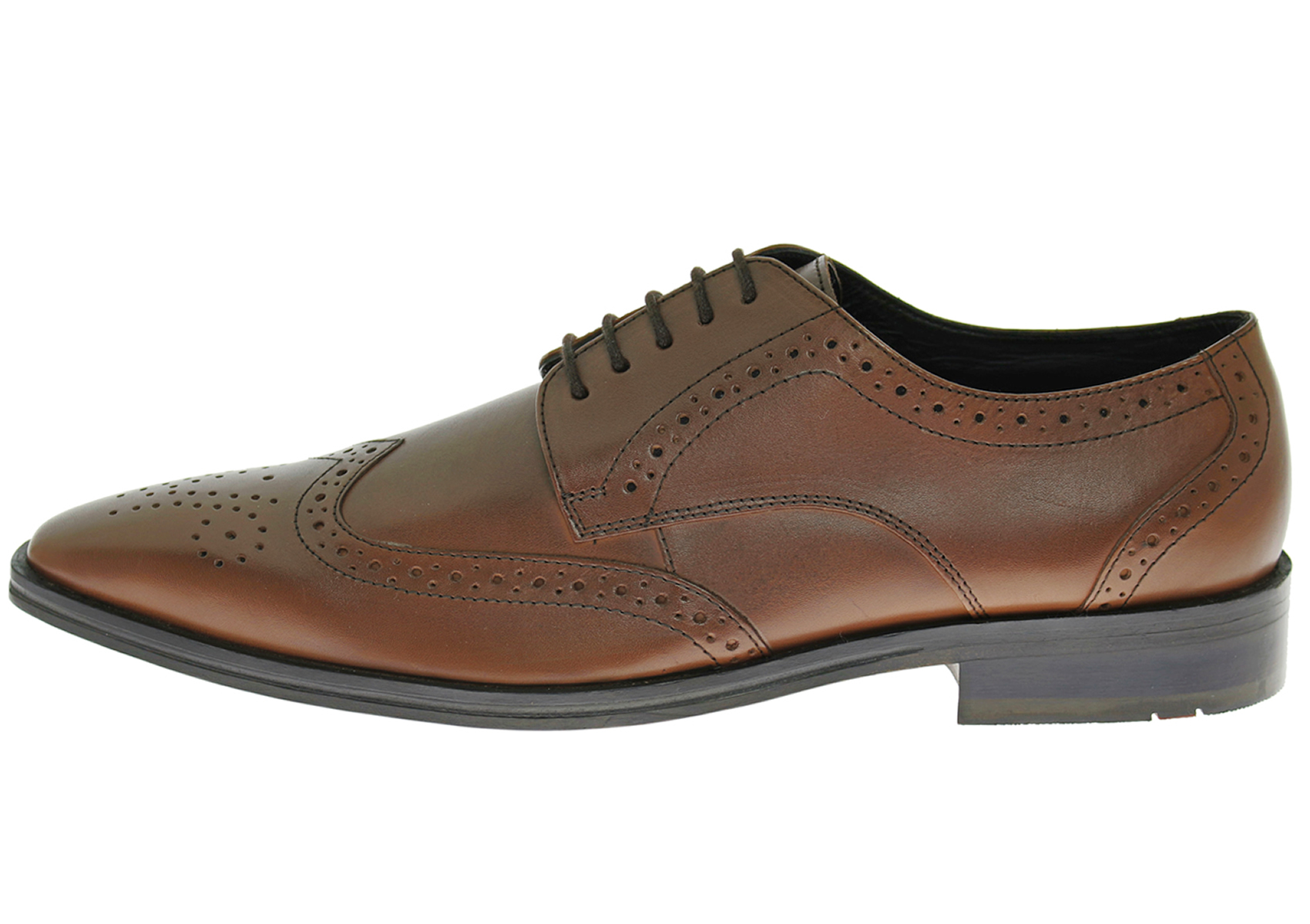 Luciano Natazzi Shoe Corporation manufactures premium men's footwear, accessories, and cedar products using the philosophy of quality, service, and integrity. This handmade premium quality leather modern oxford lace-up wingtip cap toe dress shoe from Luciano Natazzi offers high style and sophistication; perfect for your work or evening look. Smooth leather and perforated details update this classic silhouette, and its lightly-padded full leather foot bed offers comfort. Wear with a suit, sport coat or even jeans for handsomely stylish looks season after season. Imported Italian Leather Upper with Imported Argentinean Leather Sole. Made in India.