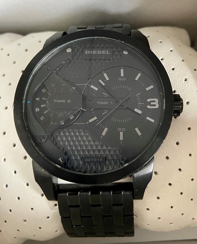 Watch Information: Gender: Men's Case Size: 47mm Dial Color: Grey Material Case: Stainless Steel Material Band: Stainless Steel Diamonds: n/a Movement: Analog Quartz Water Resist: 50 Meters Water Resistant Features: Additional Info: Packaging: Diesel Box & Papers