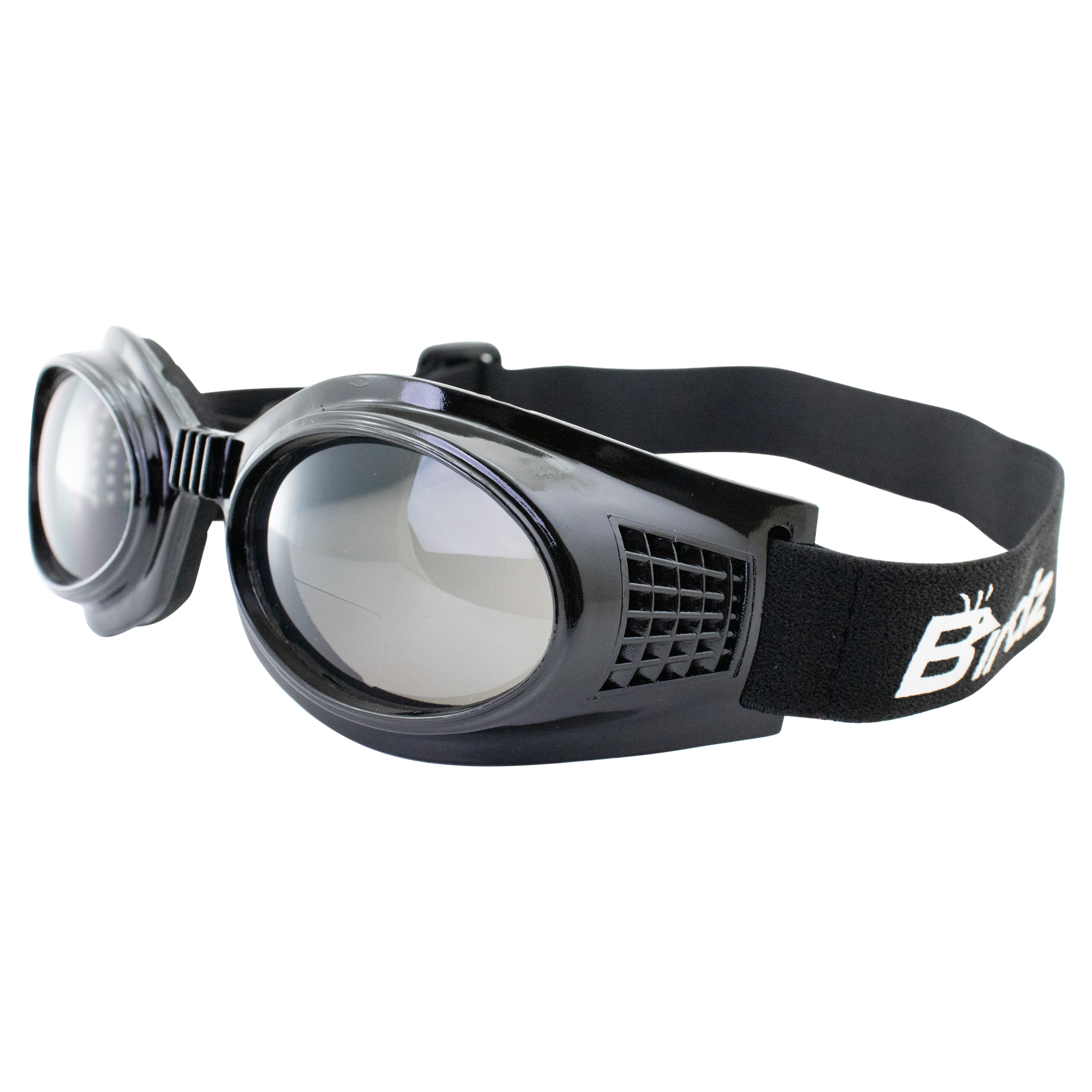Have you ever struggled to switch from sunglasses to reading glasses? Have you ever had a blurry vision while checking your bike's speedometer while driving? If you need help seeing both far and close, the Kite Bifocal Motorcycle Goggles are the perfect riding eyewear for you! You'll be able to enjoy driving out in the sun with only one pair of these reading goggles. The best part is that they have bifocal lenses, so you can see both close-up and far away. The bottom section of the lens has +1.0 magnification and is used for up-close viewing, while the upper portion is a standard lens used for viewing anything from a distance. This lets you conveniently switch between reading and seeing things in the distance without constantly taking them off and putting them back on, as regular goggles do. The polycarbonate lenses offer you the confidence that your eyes are well protected when you wear the KITE goggles. These motorbike padded goggles with smoke lenses perform best in bright conditions because they help minimize glare for greater and enhanced visibility. Whether you're riding your motorbike on a bright sunny day or practicing target shooting at the firing range, these stylish goggles will protect your eyes from dust, debris, and the sun while providing a contoured, comfortable fit. And the slim design covers as little of your face as possible while still providing enough protection. The KITE goggles are also lined with soft, Neoprene foam to shield your eyes from dust, wind, and debris while maintaining comfort over long periods of time. So, if you want a pair of goggles that provide you with comfort, durability, safety, optical clarity, and style, our Kite Motorcycle Bifocal Goggles are the best option!
