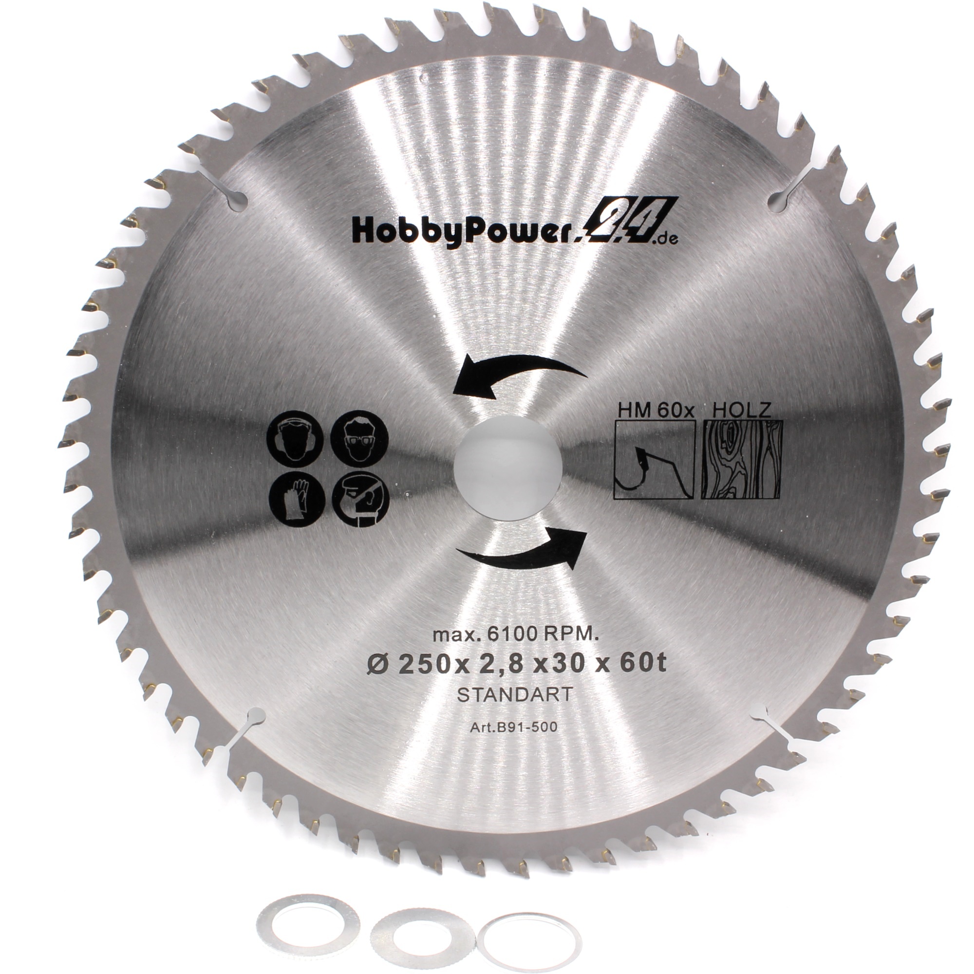 Ø 250x2,8x30 / 60 Z 6100/min. + 3 Reduzierringe 16/20/25,4mm |