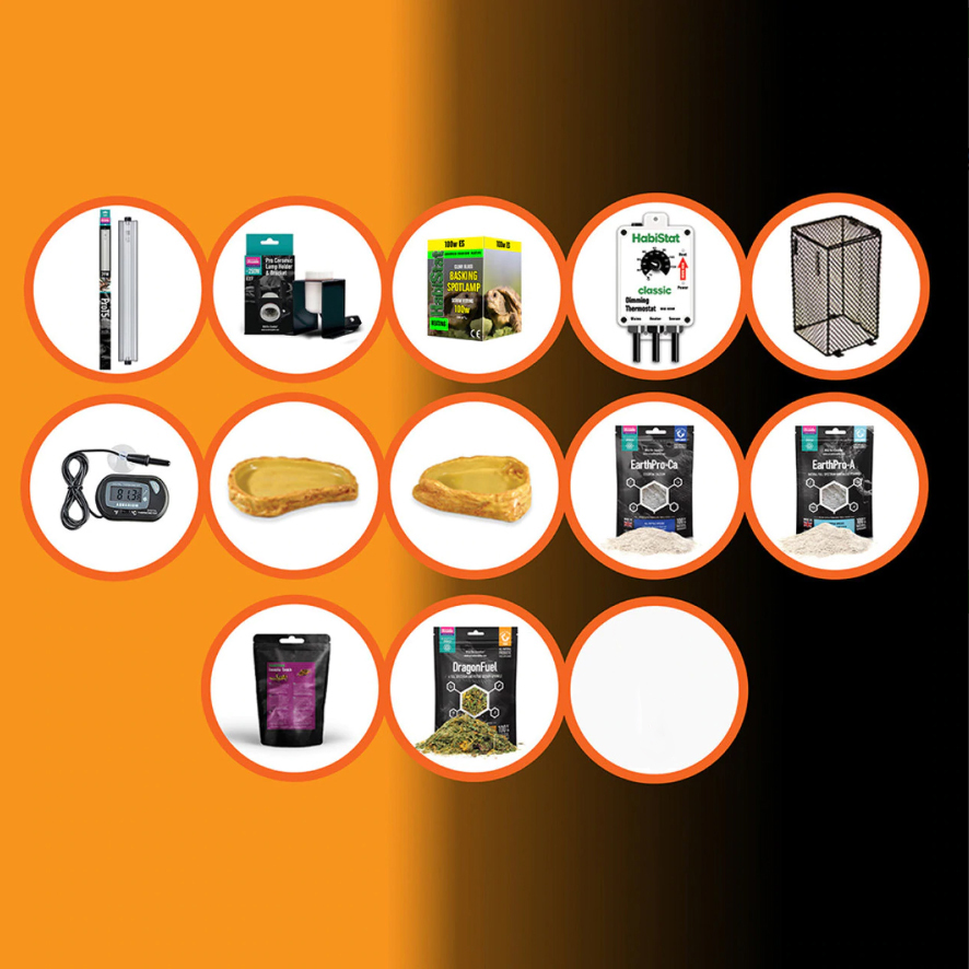 The HabiStat Bearded Dragon Accessory Kit provides everything needed to create a well-lit, heated, and fully equipped environment for your bearded dragon. Designed for 4x2x2’ vivarium setups, this all-in-one kit includes essential UV lighting, heating, and monitoring accessories, ensuring your reptile thrives in optimal conditions.