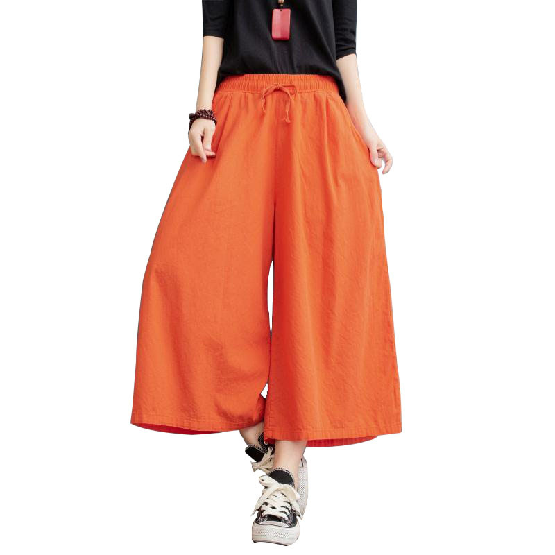 Lady Wide Leg Cotton Linen Pants Trouser Casual Loose Oversized Retro Solid Long