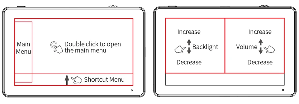 3. On the left side of the screen (1/2 split screen), you can directly adjust the brightness of the screen backlight; on the right side of the screen (1/2 split screen), you can directly adjust the volume.