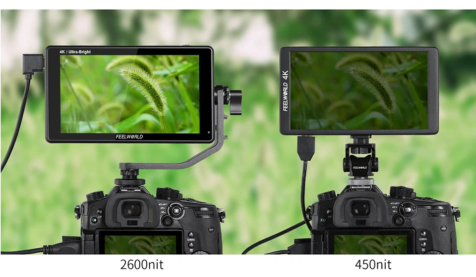The fully adjustable 2600nits screen is incredibly bright, making it perfect for shooting indoors or out. The high bright 2600nits screen is at almost 5 times the brightness of conventional field monitors, lets you shoot outdoors without reflections washing out your image. This makes it easy to see outdoors without a hood, making it easy for outdoor shooting in bright daylight!