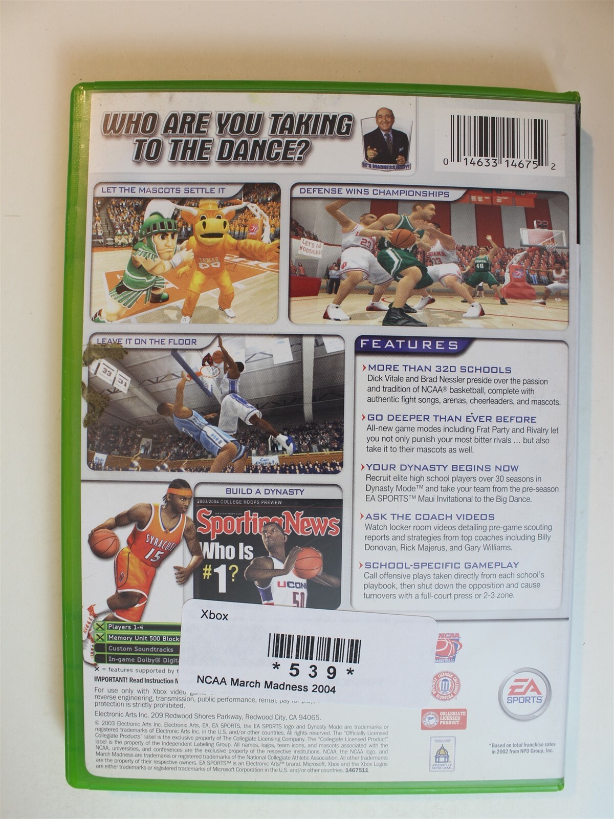 Barcode(UPC): 014633146752 Condition: Good Developer: EA Sports Genre: Sports Platform: Xbox Publisher: Electronic Arts Release Year: 2003 Title: NCAA March Madness 2004