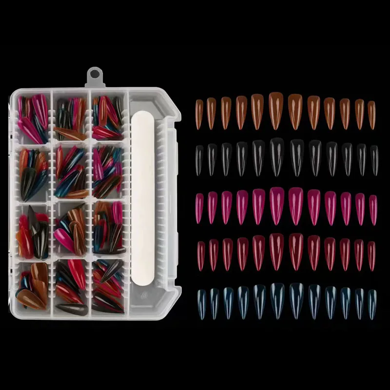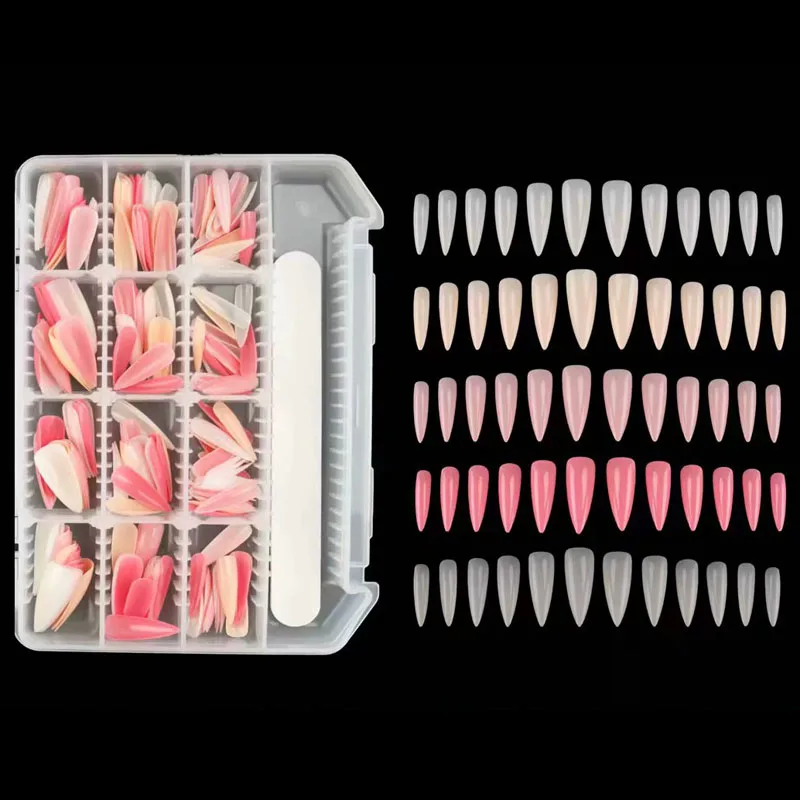 12sizes,48pcs per color,5colors,240pcs tips supplied in one box,includes one sanding file