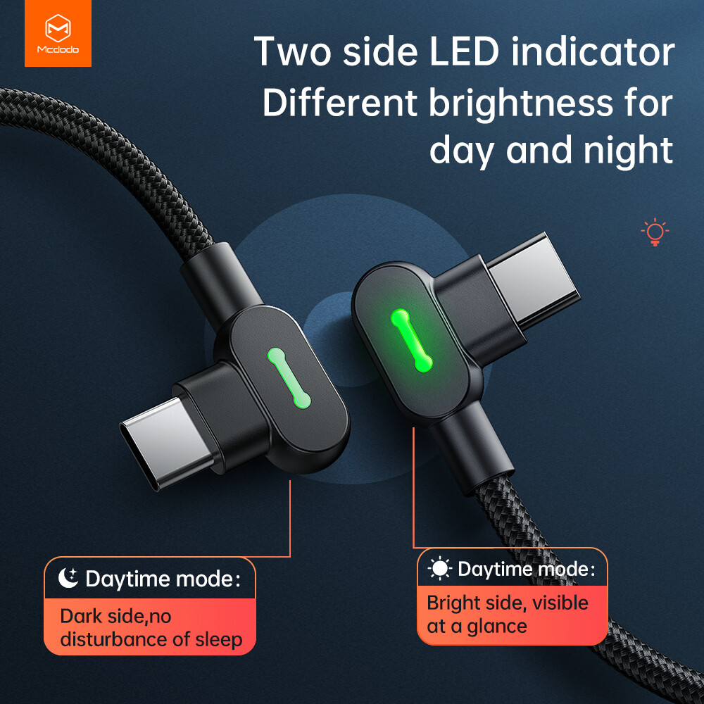 Mcdodo LED Elbow PD USB C to USB C Type-C Cable Nylon Charger Cord