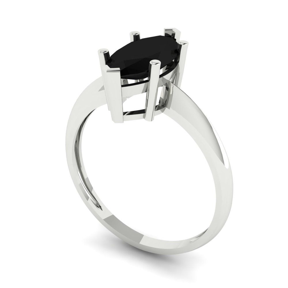 1.5 Marquise Cut Designer Statement Natural Onyx Ring Real Solid 14k White Gold