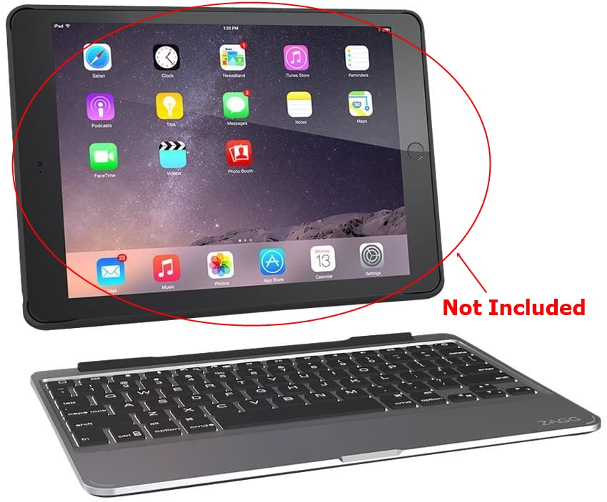 The ZAGG Slim Book wireless Bluetooth keyboard is the ultrathin solution to your mobile typing needs. Its unique hinge secures your tablet at virtually any viewing angle and allows for a convenient video and book mode, or folds flat for a protective case mode. The Slim Book is powered by one of the industry's most powerful batteries that keeps it going for up to two years between charges (Regular use of one hour per day. Using the backlit feature will impact battery life and will require more frequent charging).