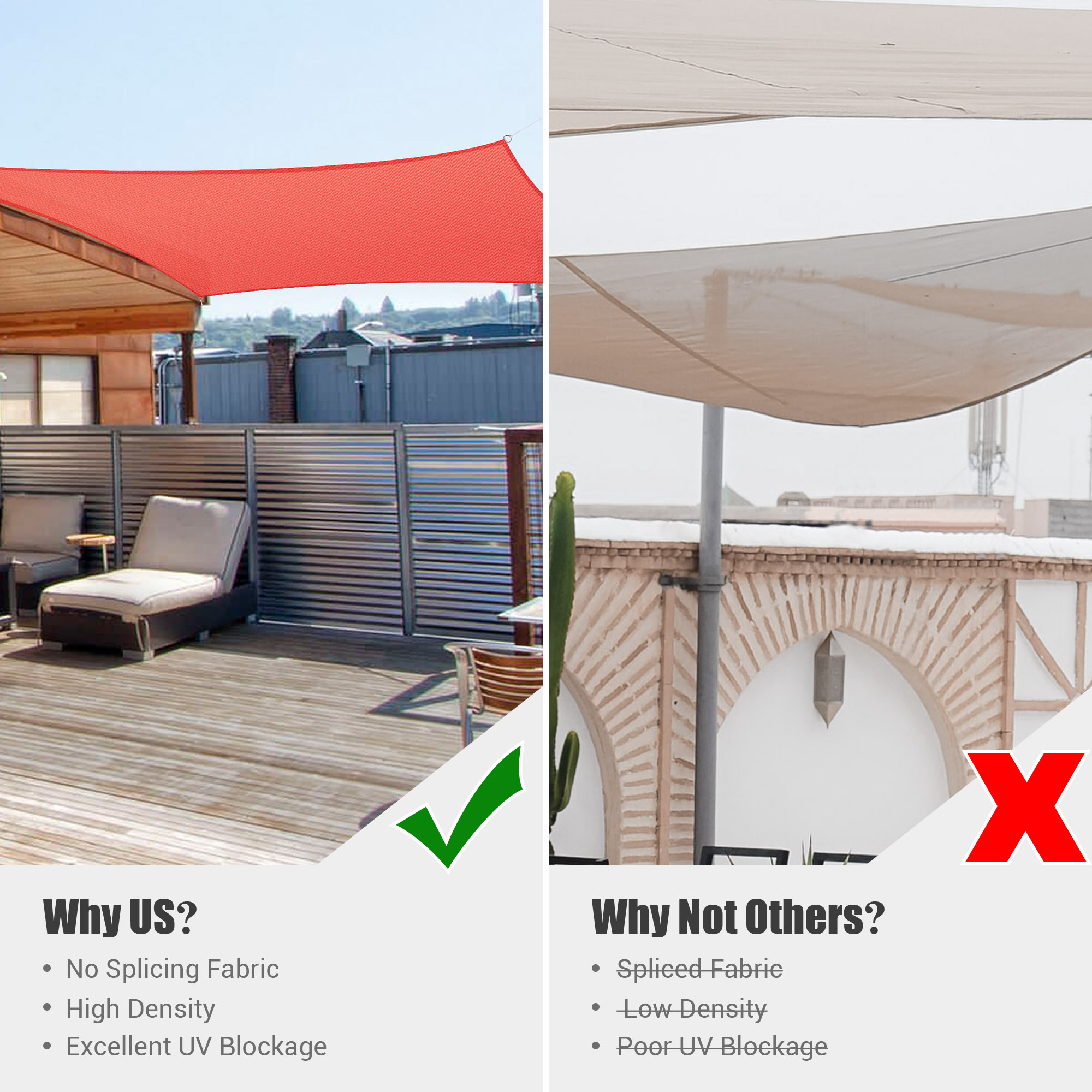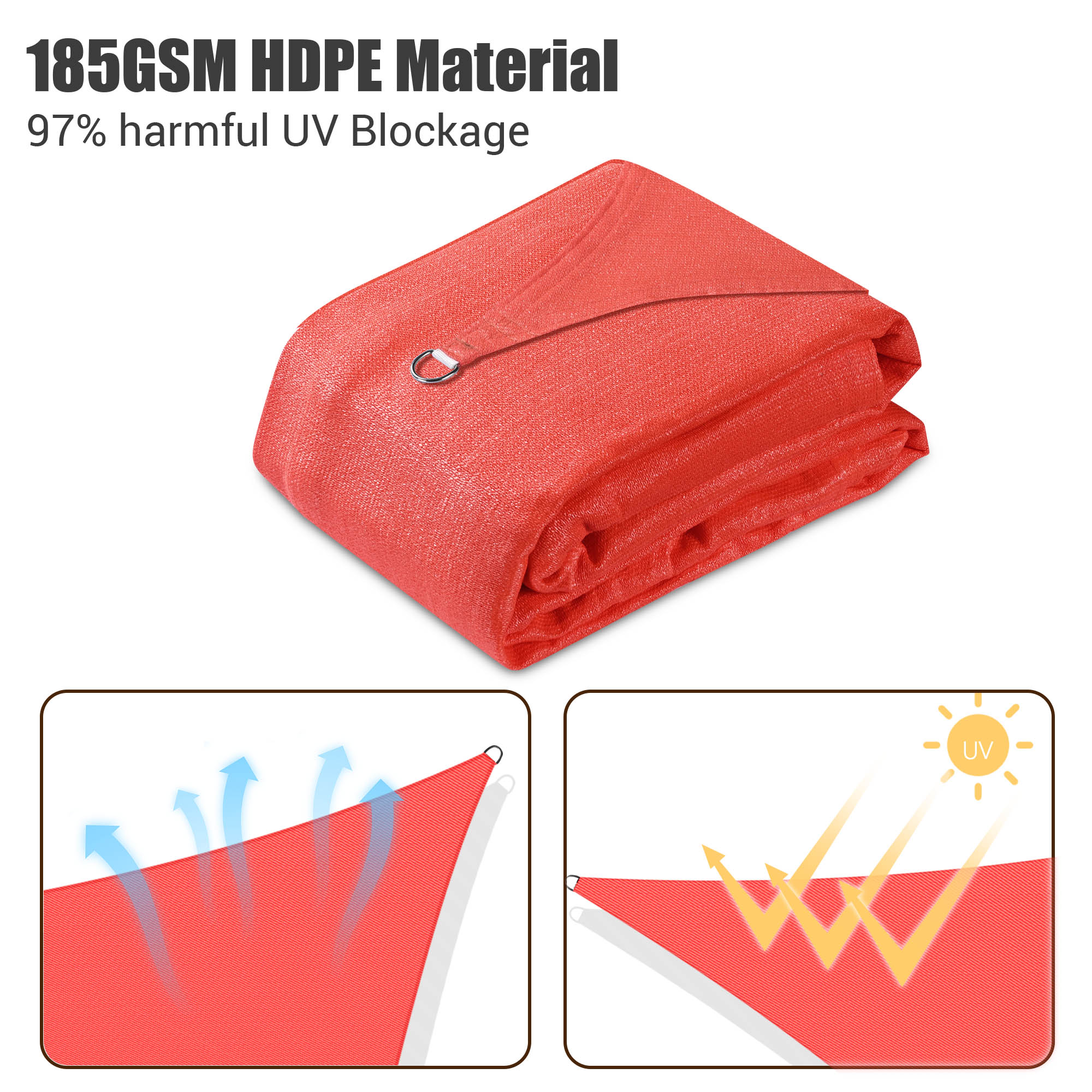 - HDPE Reduces Heat Transfer - Made of 100% brand new 185GSM HDPE material to efficiently reduce the temperature under sail about 50°F (10°C), excellent breathability to allow breeze to pass through, offers a cool and airy shelter on hot days