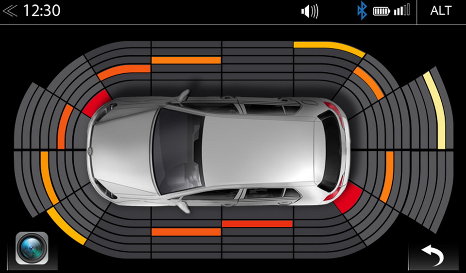 Die im Fahrzeug ab Werk installierten Abstandssensoren werden via ZENEC OPS (Optical Parking System) ausgelesen und dargestellt. Je nach Fahrzeugmodell zeigt das OPS beim Einparken eine 360° Fahrzeug-Rundumsicht oder die Front/ Heck Radarsegmente.