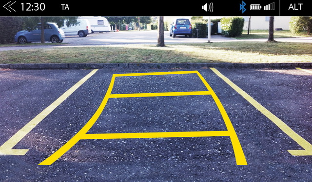 Der Z-E2065 unterstützt den Anschluss eines Kamerasystems, einschließlich der Integration von Werkskamera-Systemen mit Hilfslinien die dem dynamischen Lenkwinkeleinschlag folgen (bei älteren Fahrzeugmodellen ist ein zusätzlicher Kameraadapter erforderlich - fragen sie dazu bei uns an). Das Kamerabild aktiviert sich beim Einlegen des Rückwärtsgangs automatisch.