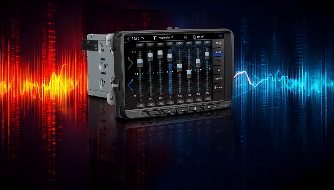 Mit dem graphischen 16-Band EQ können Sie den Klang exakt auf die Eigenheiten Ihres Fahrzeugs oder Ihre Vorlieben abstimmen. Sie können zur Optimierung der Klangwiedergabe auch eines der 7 vordefinierten EQ-Profile auswählen.