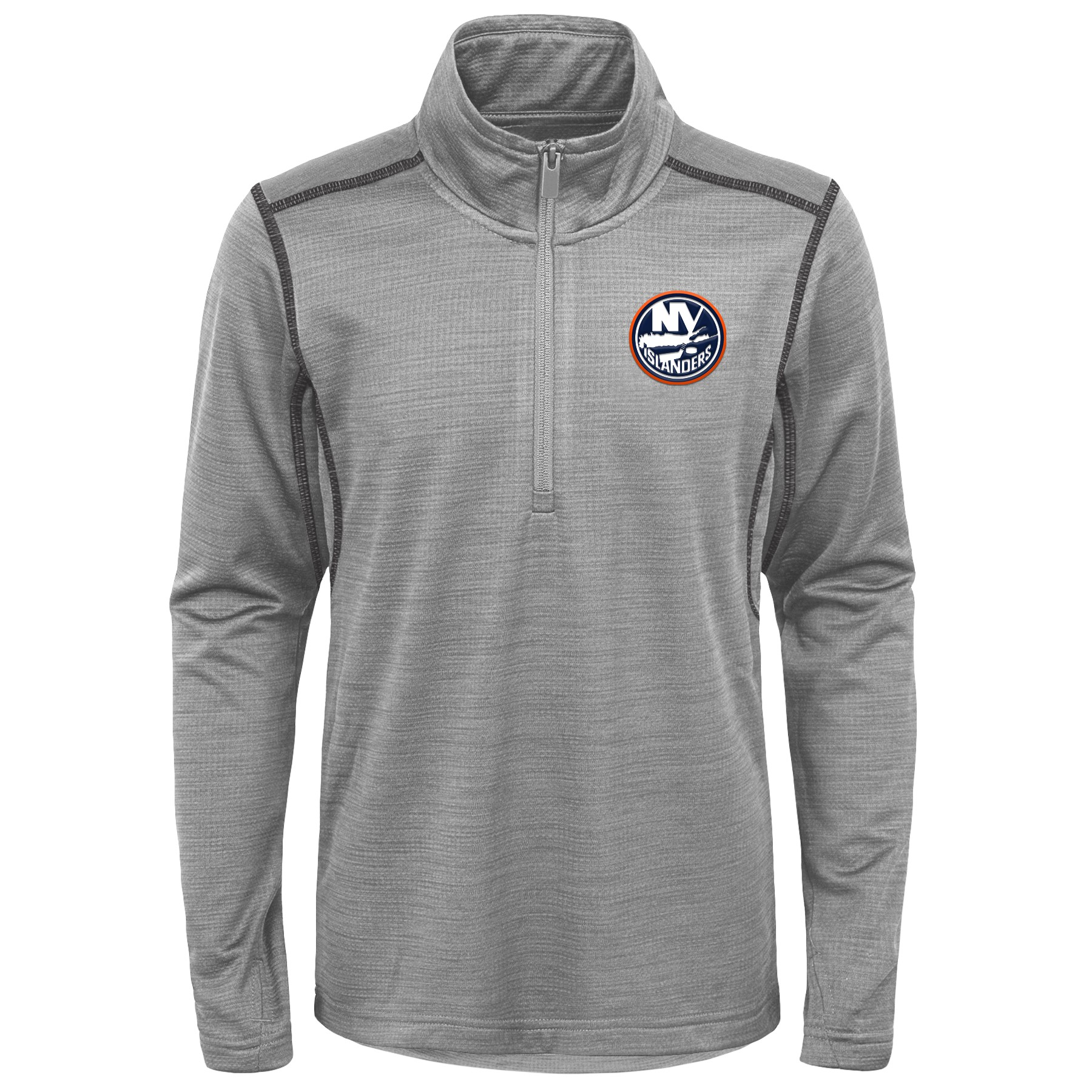 The Back to the Arena 1/4 Zip is perfect for the young NHL fan in your life. This Poly Streak built 1/4 zip with brushed box interior is comfortable and will have any hockey fan looking like a pro. With your favorite NHL team featured on the chest and NHL logo on the back collar this 1/4 zip is perfect for around the rink or with your everyday wardrobe. Boys youth sizing.