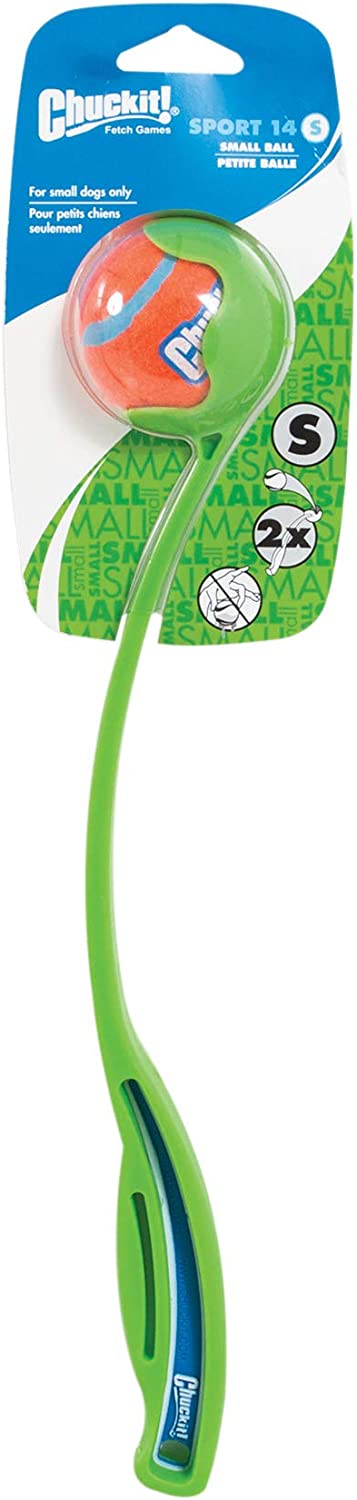 The Chuckit Small Ball Launcher offers a new and restyled ergonomic grip while offering the same benefits as the standard Chuckit: Hands-free ball pickup without bending over, and exceptional throwing distance. For small dogs only. Use the Chuckit! Small Ball Launcher with all Small 2-inch Chuckit Compatible balls.
