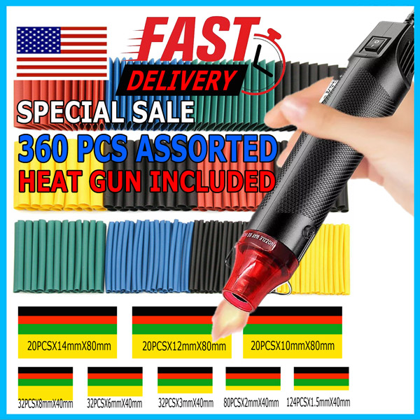 - 360 PCS HEAT SHRINK TUBING Sleeve Cable Wire Wrap Tube 2:1 Assortment Kit Box Set