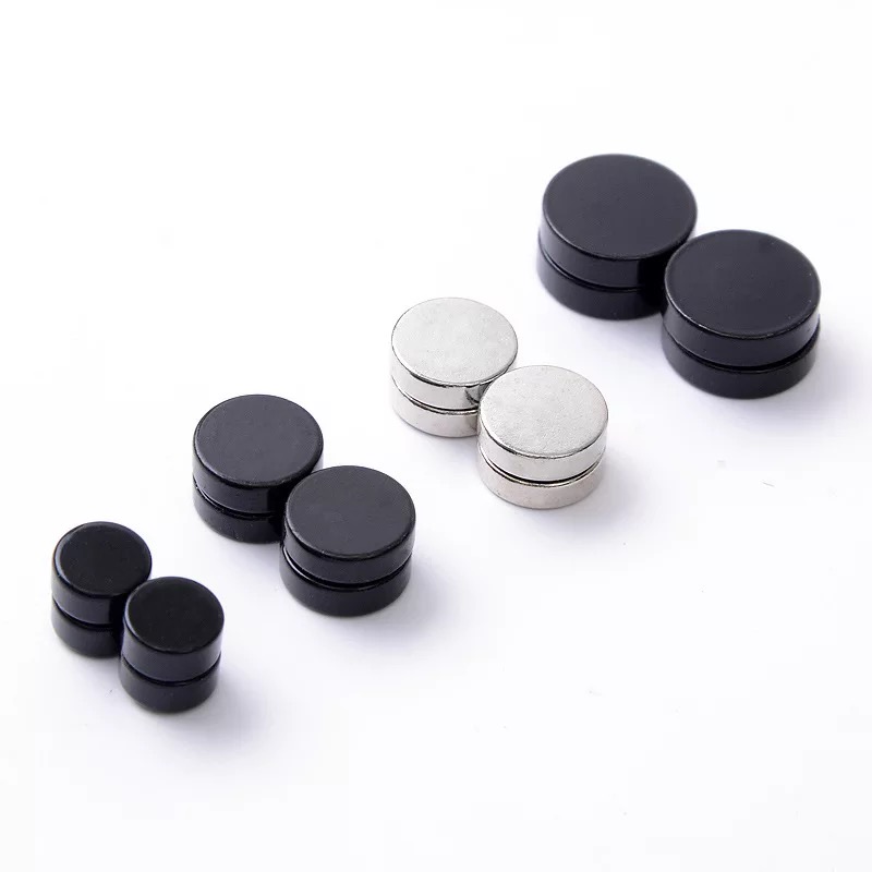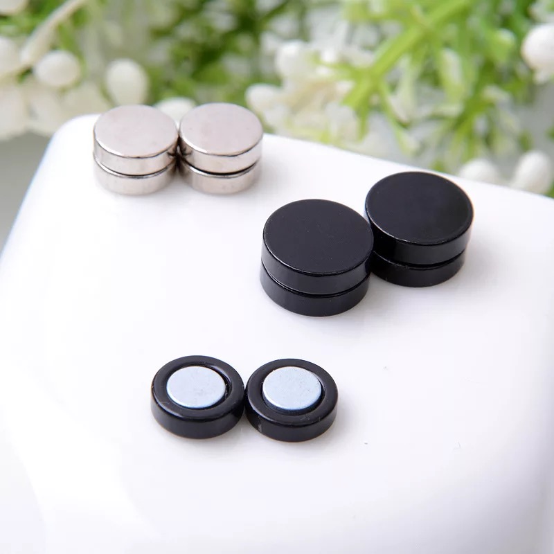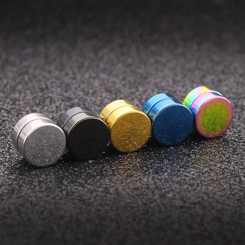 Magnetic Earrings Gothic Stainless Steel Round Ear Stud SILVER GOLD BLACK Unisex