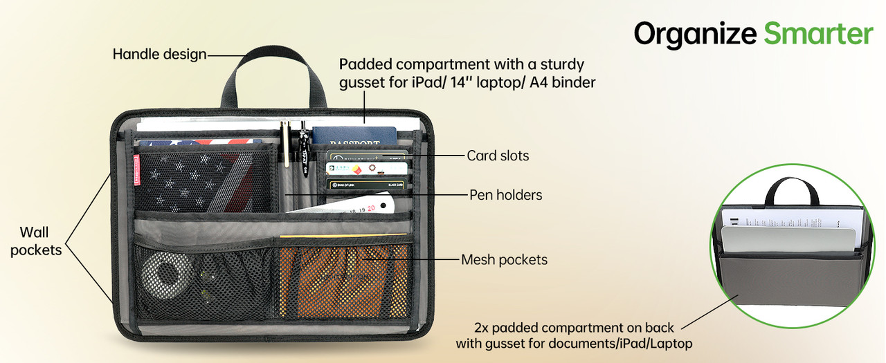 Professional Briefcase Insert Organizer, A4 Document & Accessory Carry Pouch