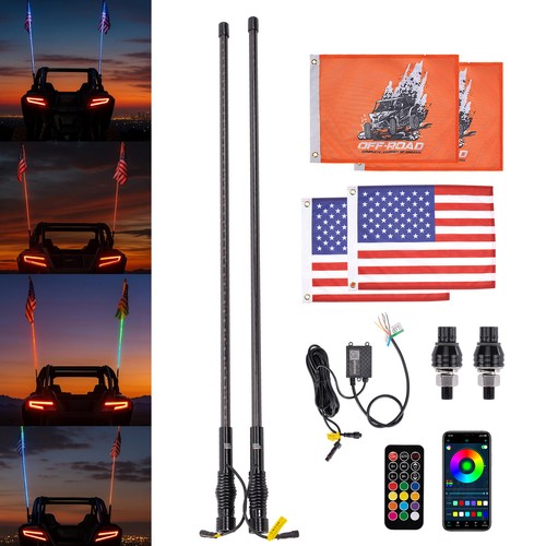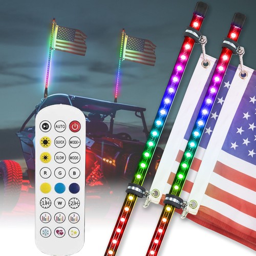Pair 3ft Spiral Whip Lights Waterproof 366 Modes RGB LED Antenna UTV ATV for RZR