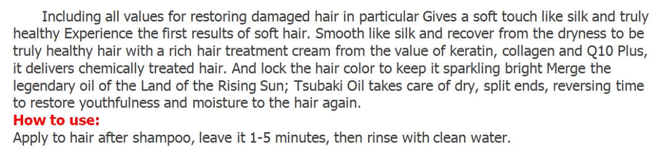 | | | Cruset Keratin Complex Hair Repair Treatment Mask 500 ml. Q10 Collagen | Shipping Details: - The item will be shipped worldwide next business day after the money has been transferred to my Paypal account and you should received in 2-4 weeks. The item will be posted by airmail from Thailand in well package and send by Non-Registered airmail.