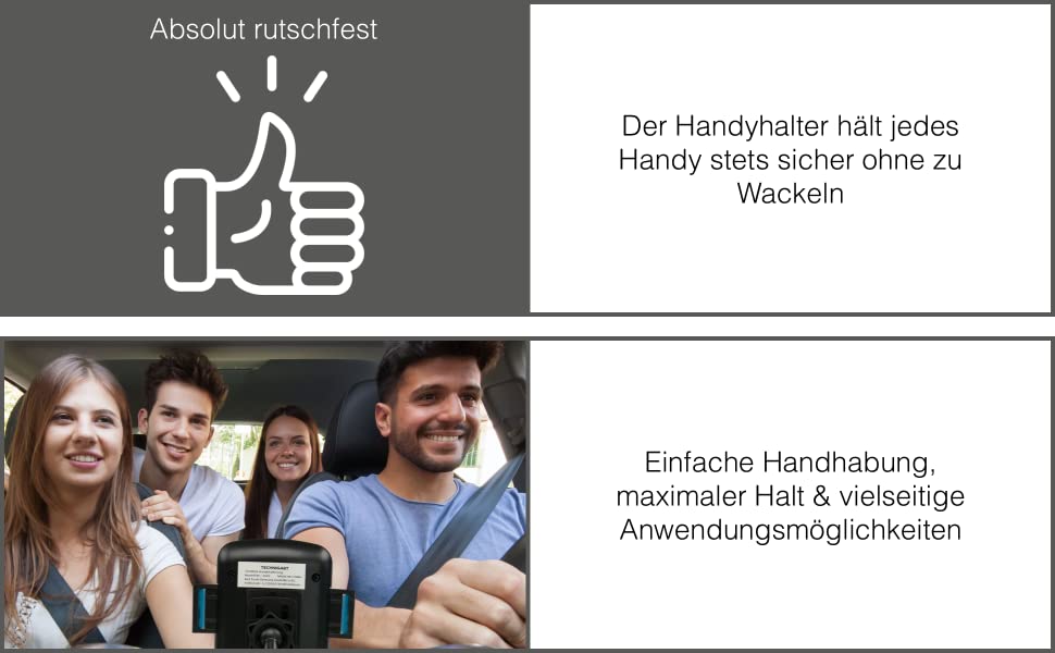 ✅Universal kompatibel: Der extra große Handy-Halter hat seitlich verstellbare Flügel zur Anpassung der Telefon-Größe. Passend für alle Handys mit einer max. Breite von ca. 8 cm
