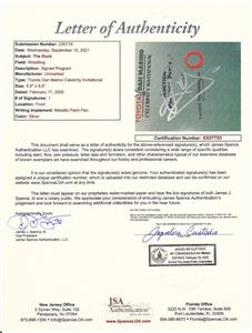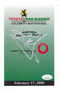 Signature is hand-signed on 6x8 Toyota/Dan Marino Celebrity Inviatation Program.