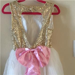 NEW Shining sequins and tulle lace layered dress, heart shape open back with button closure and pink satin bow make your sweet princess to be the most graceful and shining girl in the crowd. Have a dress up birthday party for your little one. The dress is designed with bling bling sequin on the top; sleeveless cutting, bow embellishes the back waist Suitable for daily wear, party , wedding, pageant, birthday, Halloween or other special occasions