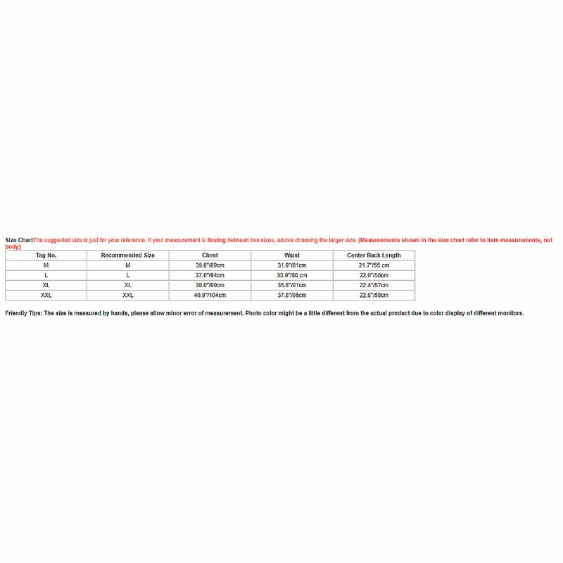 | Tag No. | Recommended Size | Chest | Waist | Center Back Length |