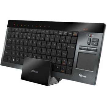 Das Thinity Wireless Entertainment Keyboard von Trust ist eine kompakte, sehr flache Funktastatur mit integriertem Touchpad, zusätzlichen Multimediatasten und integriertem Li-Ion-Akku mit separater Ladestation - das ideale Eingabegerät für Media Center PCs. Ein zusätzliches, separates Mausgerät ist nicht erforderlich, da die volle Steuerung des Computers, der PlayStation 3 oder der XBox 360 über dem integrierten Touchpad stattfindet (Autoscroll-Funktion).